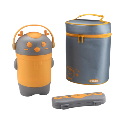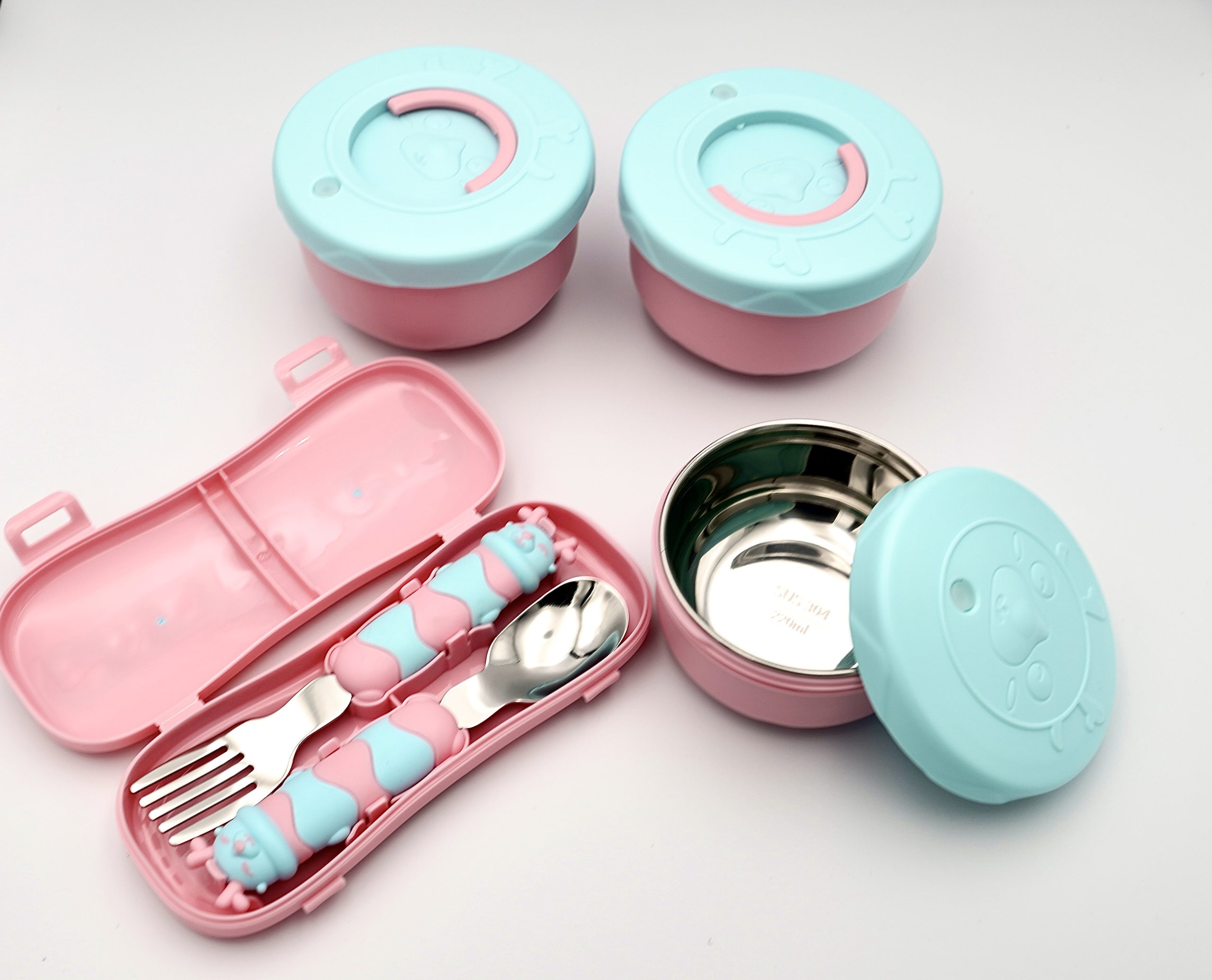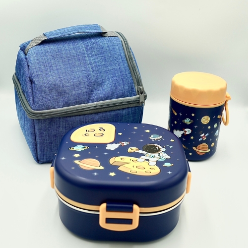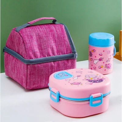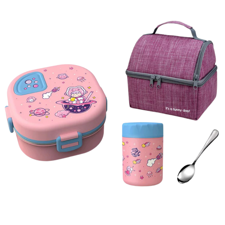 Pink Space Slice Set (2 pcs), Stainless Steel Soup Box and Lunch Box with Matching Bag