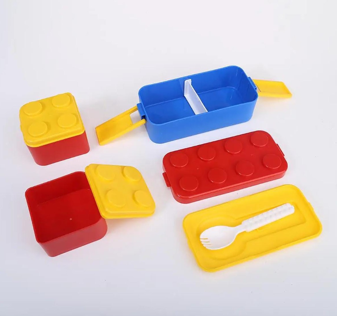 LEGO-inspired design that looks like building blocks, making mealtime fun for kids.